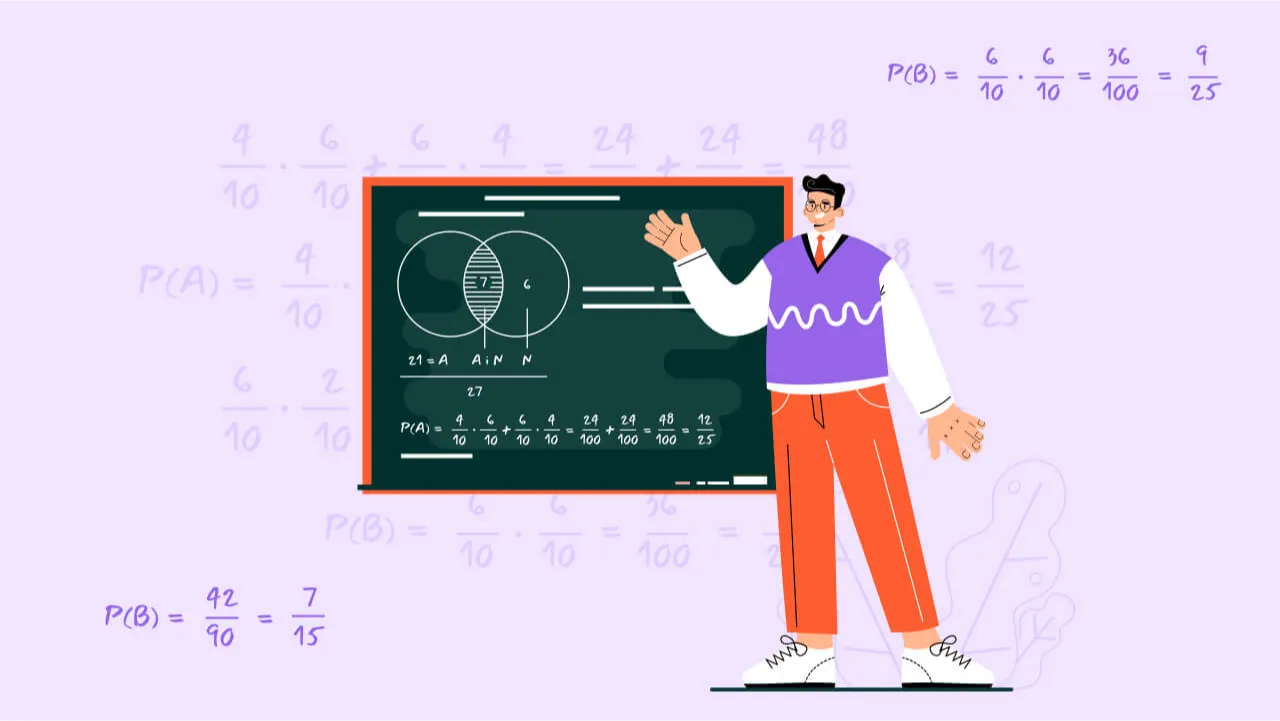 Pokażę Ci jak rozwiązywać zadania polegające na wylosowaniu dwóch elementów ze zbioru lub losowaniu po jednym elemencie z dwóch zbiorów (ze zwracaniem elementu lub bez jego zwracania). Nauczysz się też rozwiązywać zadania polegające na losowaniu liczb ze zbioru liczb dwucyfrowych. Dowiesz się, czym jest tzw. “drzewko” w rachunku prawdopodobieństwa i jak z jego pomocą rozwiązywać zadania